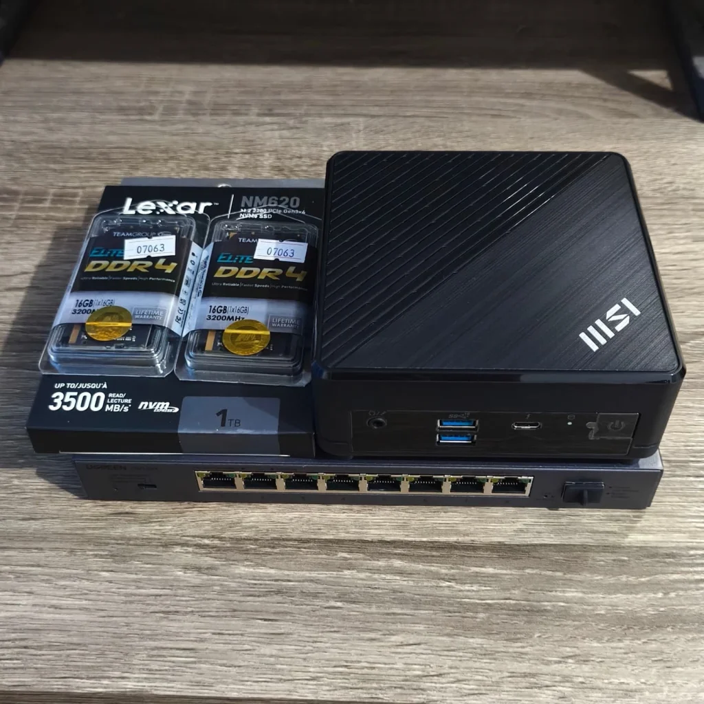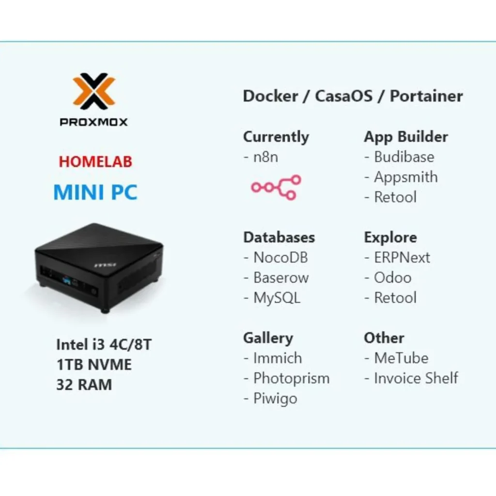 new proxmox mini home server 1TB/32GB replacing i5 desktop jadul yg boros listrik mini, low power 15w utk vm/container testing